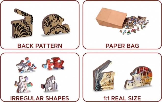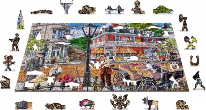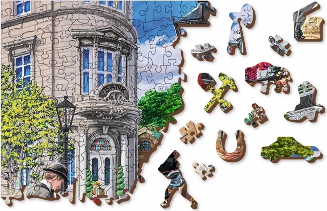 Genießen Sie fesselnden Puzzlespaß mit dem Holzpuzzle WOODEN CITY, das eine farbenfrohe Szene einer pulsierenden historischen Straße zeigt. Speziell geformte Teile mit feinen Laser-Details erhöhen den Spielspaß und die Ästhetik – einige Teile in Tier- oder Objektform lassen sich als kleine Figuren aufstellen.