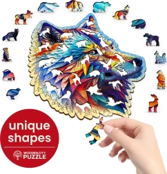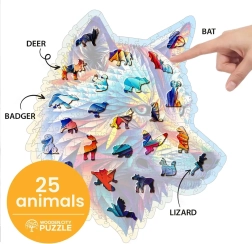 Gönnen Sie sich smarten Puzzlespaß mit dem WOODEN CITY Holzpuzzle – Noble Wolf. Dank speziell geformter Teile, von denen einige die Form von Tieren haben und als kleine Figuren stehen können, ist das Zusammensetzen fesselnder und anspruchsvoller als bei klassischen Puzzles. Durch Laser hervorgehobene Details verleihen dem Motiv Tiefe und Eleganz.