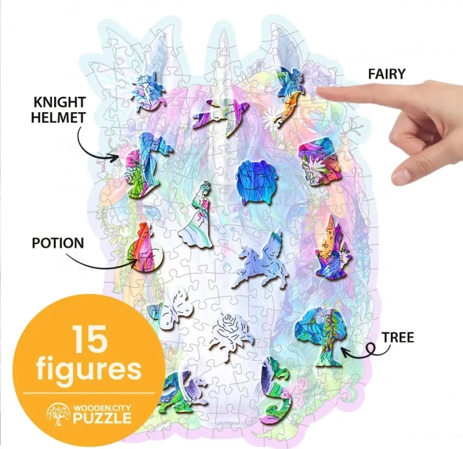 Das stilvolle Holzpuzzle mit Einhornmotiv der Marke WOODEN CITY bietet ein großartiges Erlebnis für Liebhaber origineller Puzzles. Die lasergeschnittenen Teile mit hervorgehobenen Details lassen sich angenehm zusammensetzen, und einige von ihnen haben die Form von Tieren, die auch separat als kleine Figuren aufgestellt werden können.