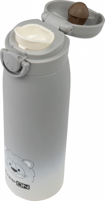 Die Oberfläche der Thermoskanne ist mit einem attraktiven Löwenmotiv verziert, das Kinder anspricht und der Thermoskanne ein originelles Aussehen verleiht.