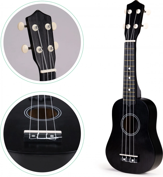 Entdecken Sie die Freude an der Musik mit einer Kinder-Ukulele, die aussieht und sich anfühlt wie ein echtes Instrument. Dank stimmbarer Mechaniken und Nylonsaiten lernen Kinder einfache Lieder zu spielen und verbessern Schritt für Schritt ihre Technik. Die kompakte Größe und der stabile Holzkorpus sorgen für angenehme Handhabung und lange Lebensdauer.