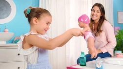 Der gut sitzende rosa Badeanzug und die Badekappe mit verspielten Motiven regen Rollenspiele an und fördern Fürsorge und Vorstellungskraft. Ein ideales Geschenk für den ersten Kontakt mit Puppen und für fröhliche Momente in der Badewanne.