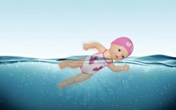 Die niedliche Schwimmpuppe BABY born My First Swim Girl mit 30 cm Größe ist perfekt zum Spielen in der Badewanne und im Pool. Dank der wasserfesten Ausführung und des leichten Körpers schwimmt sie und bewegt sich im Wasser und fördert Fantasie und Feinmotorik von Kindern ab 12 Monaten. Bunte Schwimmbekleidung und Mütze machen sie zur idealen Freundin für den täglichen Badespaß.