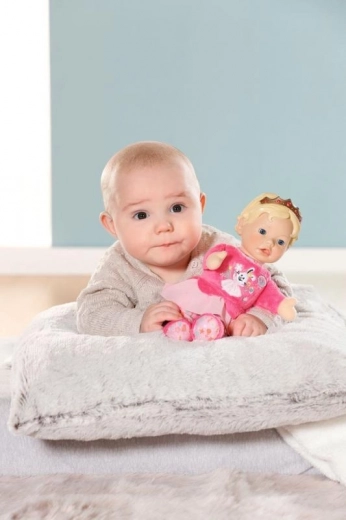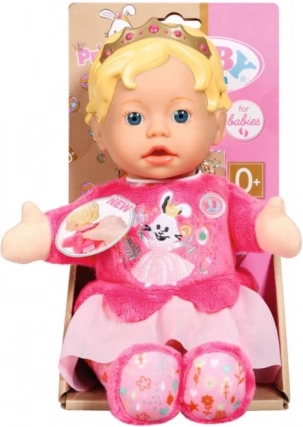 Die BABY born for babies Prinzessin ist die ideale erste Puppe für Babys und Kleinkinder. Der weiche Körper lädt zum Kuscheln ein, während der leichte Vinylkopf mit goldener Krone der Spielfigur einen königlichen Look verleiht. Integrierte Täschchen in den Händen machen die Puppe zur Handpuppe – einfach die Finger hineinstecken und Geschichten zum Leben erwecken.