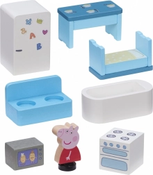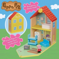 Spielhaus Peppa Wutz – das Häuschen lässt sich öffnen, darin findest du Holzmöbel und 1 Figur.