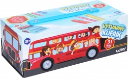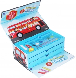 Alle Utensilien haben ihren festen Platz, sodass nichts verloren geht und das kreative Arbeiten immer griffbereit ist. Eine tolle Wahl zur Förderung von Kreativität, Fantasie und Feinmotorik – zudem mit einem attraktiven Busmotiv, das Kindern Spaß macht.