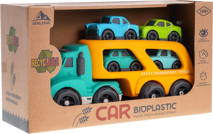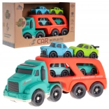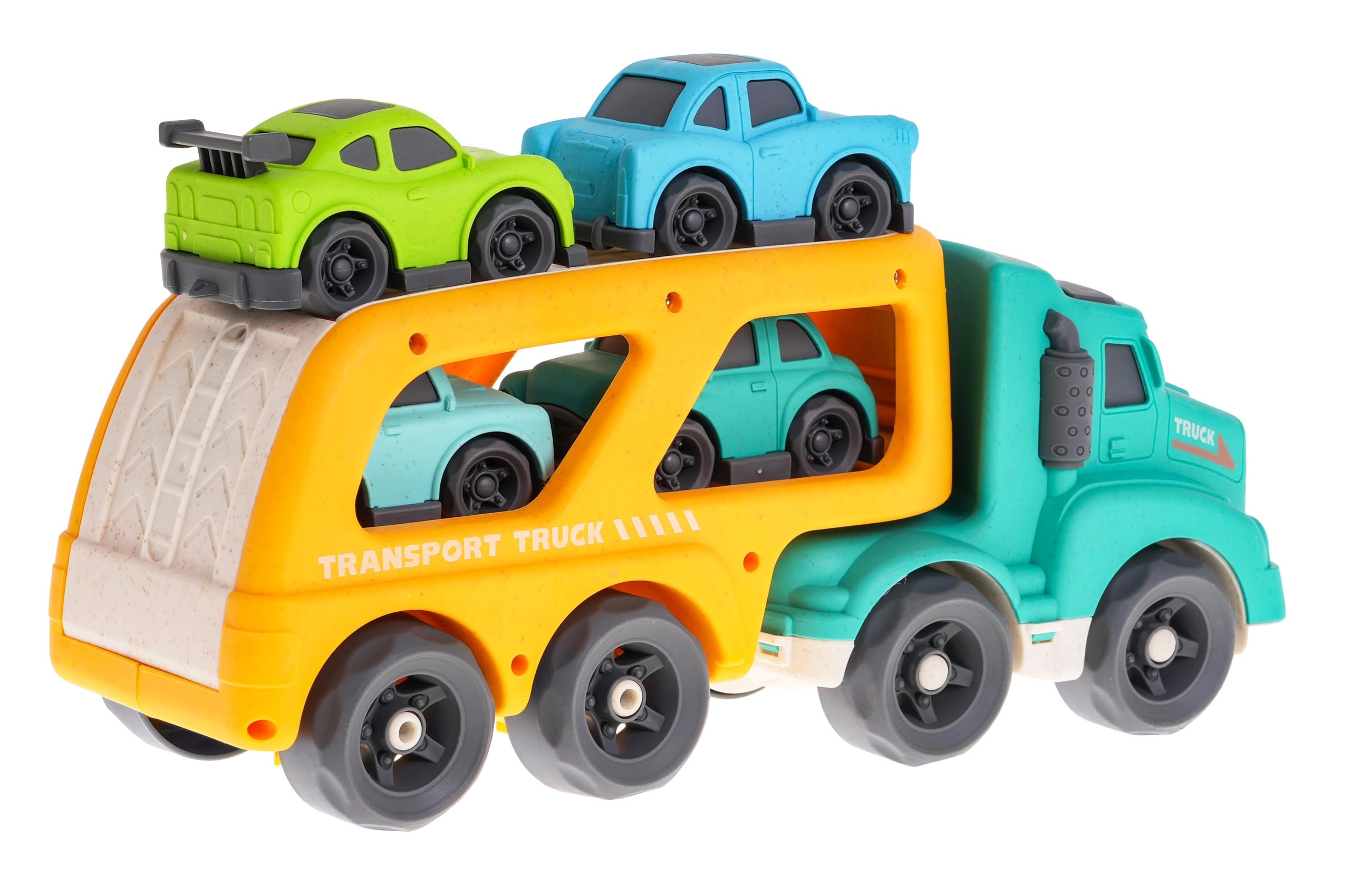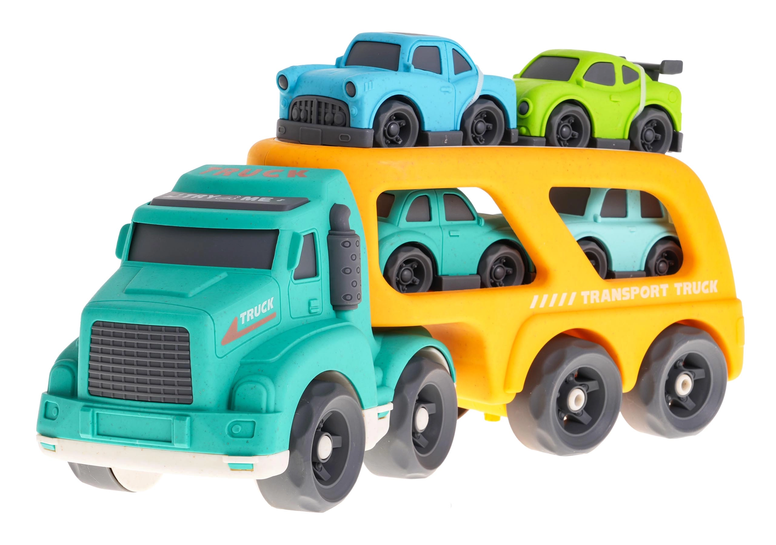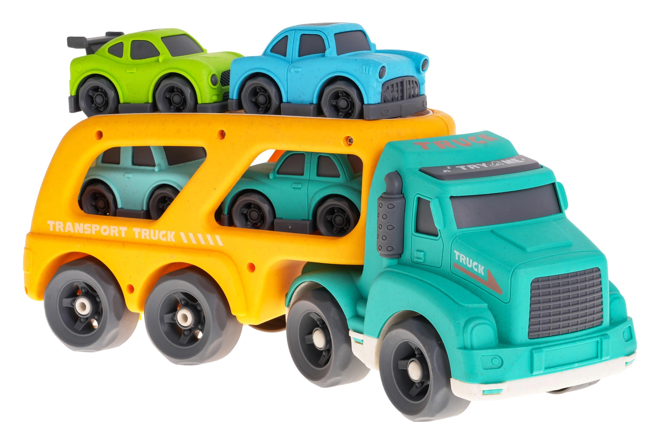 Der Anhänger lässt sich leicht abkoppeln und die Autos können eigenständig fahren. Perfekt zur Förderung von Fantasie und Rollenspiel.