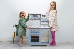 Dank der durchdachten Maße 60 × 30 × 89,5 cm und einer Arbeitshöhe von 50 cm ist die Küche ergonomisch und auch für kleinere Kinder gut zugänglich. Hochwertige Materialien und robuste Verarbeitung gewährleisten lange Lebensdauer und sicheres Spiel im Einklang mit der CE-Zertifizierung.