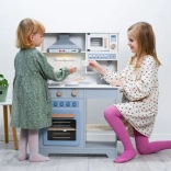 Herd, Backofen, Mikrowelle und Spüle schaffen ein authentisches Umfeld. Drehknöpfe und Tasten regen Kinder zum Entdecken und zu sensorischem Spiel an.