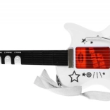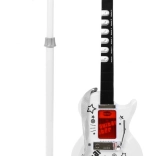 Entdecken Sie die unwiderstehliche elektrische Gitarre für zukünftige Gitarristen, die Teil eines Sets mit Mikrofon und Verstärker ist. Dieses Set ist ein außergewöhnliches Musikinstrument, das einen positiven Einfluss auf die Entwicklung des Kindes hat. Musik fördert die Kreativität und kann Talent in jungen Jahren entdecken. Diese Ausrüstung ist so konzipiert, dass sie leicht für Kinder zu verwenden ist und gleichzeitig großen Spaß bietet. Die Gitarre enthält 6 Metallseiten, 3 Töne, 7 Melodien und 12 kurze Soli.