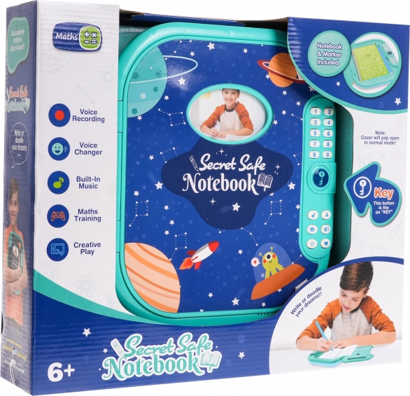 Kinder geheimes Tagebuch mit Zahlenschloss, das nicht nur zur Aufbewahrung wichtiger Notizen dient, sondern auch unterhaltsame und lehrreiche Funktionen bietet. Es hat ein farbenfrohes Design mit Planeten und Raketen und bietet die Möglichkeit zur persönlichen Anpassung. Vor der ersten Nutzung muss ein vierstelliges Passwort eingestellt werden, das den Schutz aller Geheimnisse im Inneren gewährleistet.