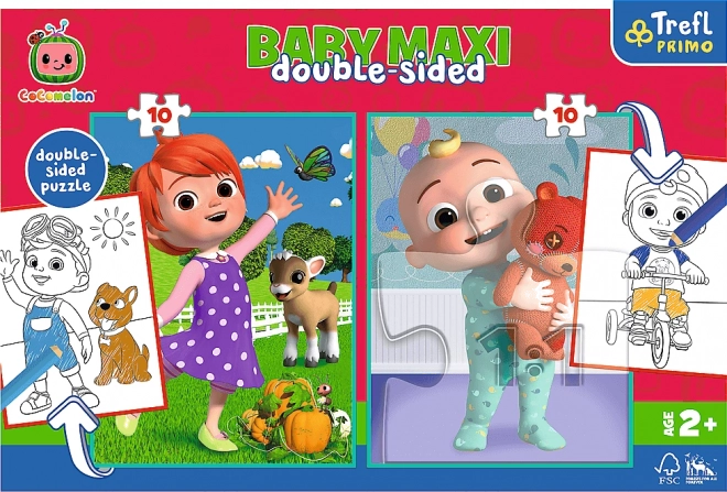 Entdecken Sie cleveren Spielspaß für die Kleinsten: Zwei große Motive mit COCOMELON setzen Sie aus 2×10 Teilen zusammen; die Rückseite jedes Puzzles dient als Malvorlage. Nach dem Ausmalen können Kinder neue, originelle Szenen puzzeln und dabei Vorstellungskraft und Geduld trainieren.