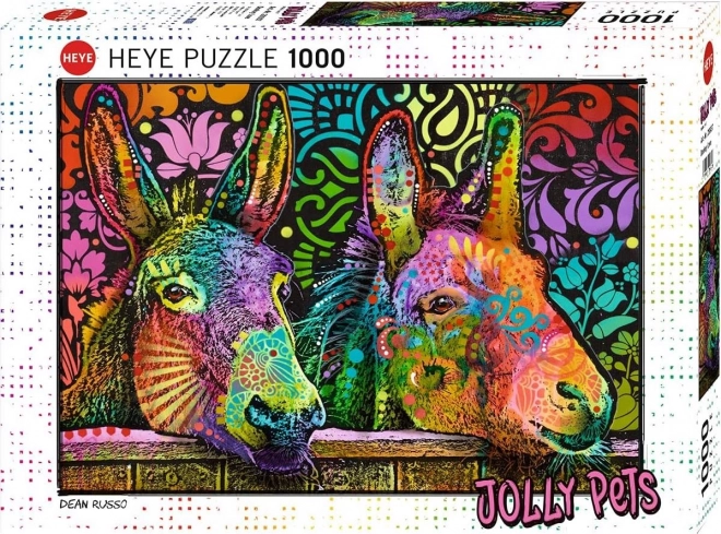 Die beliebte Marke Heye präsentiert das verspielte Motiv „Verliebte Esel“ aus der Serie Jelly Pets. Dank der 1000 Teile bietet das Puzzle eine angenehme Herausforderung für Anfänger und Fortgeschrittene und ergibt nach dem Fertigstellen ein attraktives Bild im Format 50 × 70 cm, das im Rahmen hervorragend zur Geltung kommt.