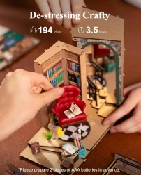 Tauchen Sie ein in die Welt der Literatur und des Retro-Charmes mit dem Miniatur-Bücherladen-Haus von RoboTime. Genießen Sie das Erlebnis, Ihren eigenen magischen Raum mit 194 Teilen einschließlich LED-Beleuchtung zu gestalten.
