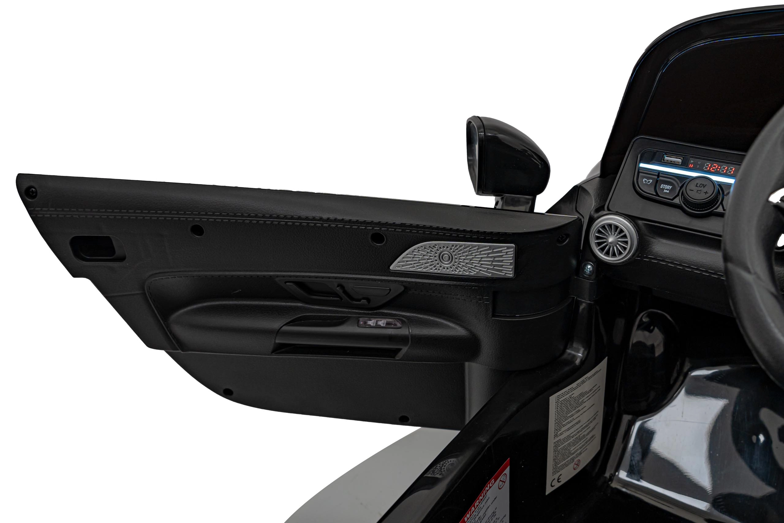 Für Sicherheit und Kontrolle sorgt die elterliche 2,4‑GHz‑Fernbedienung mit Not‑Stop‑Taste und Auswahl aus 3 Geschwindigkeiten. Kinder freuen sich über LED‑Lichter vorne und hinten, Motorklänge beim Start, zu öffnende Türen und den bequemen Sitz aus Kunstleder mit Gurten. Umfangreiche Multimedia: MP3, USB, AUX, Bluetooth und FM‑Radio – Lieblingslieder stets zur Hand.