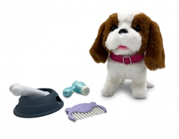 Der niedliche braun-weiße Hund Ťapka aus der Serie Mazlíci ist ein interaktiver Plüschfreund, der Kinder unterhält und auch etwas lehrt. Er läuft, gibt Geräusche von sich und wedelt mit dem Schwanz. Im Set enthalten sind Kamm, Futternapf und Knochen für spielerische Pflege und die Förderung von Vorstellungskraft, Empathie und Feinmotorik.