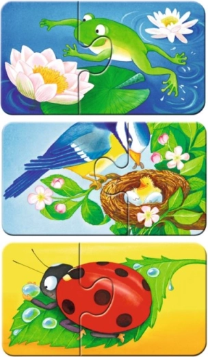 Zweiteiliges Puzzle mit wunderschönen Bildern, speziell für die kleinsten Kinder entwickelt. Robuste, stabile Teile aus extra starkem Karton fördern bei Kindern Motorik, Konzentration und Fantasie. Unter den neun Motiven finden Sie beliebte Tiere, denen man im Garten und in seiner Umgebung begegnen kann: Schmetterling, Igel, Marienkäfer und weitere.