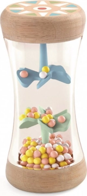 Djeco Holz-Rassel mit Regenbogenperlen und Propellern