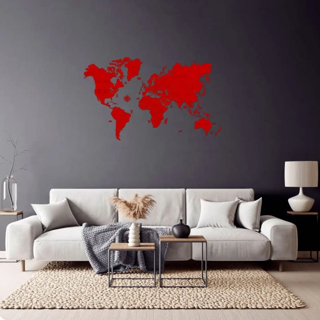 Setzen Sie zu Hause oder im Büro ein starkes Design-Statement. Diese handbemalte Holzweltkarte in Rot überzeugt mit klaren Linien, modernem Look und der einfachen Montage mittels beiliegendem doppelseitigem Klebeband. Dank präzisem Laserschnitt aus Birken-Sperrholz besticht sie durch Detailtreue und Robustheit.