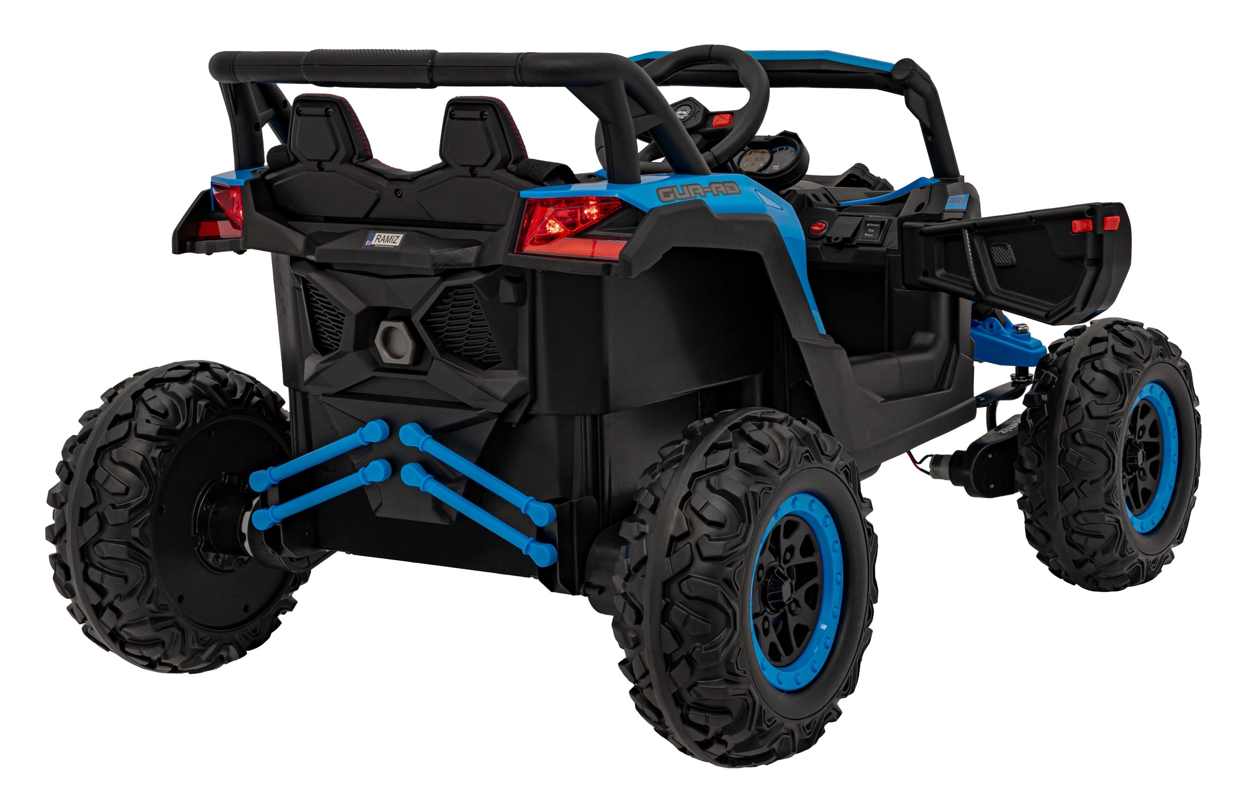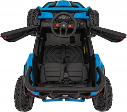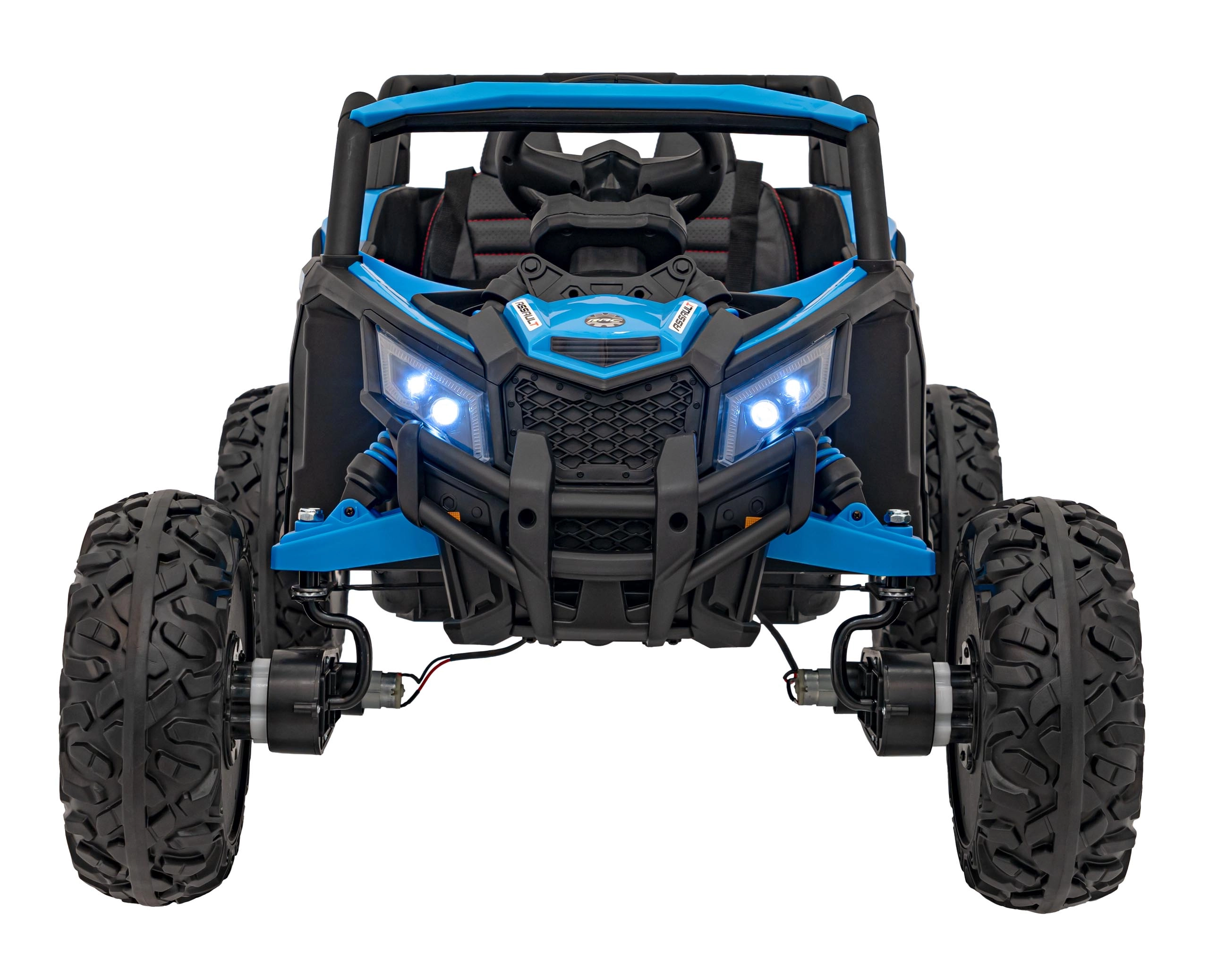 Eltern schätzen die 2,4-GHz-Fernbedienung mit 3 Geschwindigkeiten und Notfall-Stop-Taste. Kinder freuen sich über das Panel mit MP3/USB/Bluetooth, Sounds im Lenkrad sowie realistische LED-Beleuchtung vorne und hinten. Der Premiumsitz aus Ökoleder, Sicherheitsgurte und zu öffnende Türen erhöhen Komfort und Sicherheit.