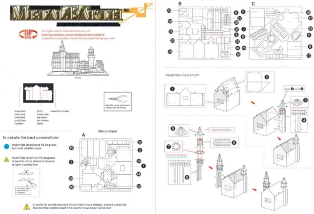 Erleben Sie ein unvergessliches Erlebnis beim Zusammenbau des wunderschönen 3D-Puzzles Schloss Neuschwanstein von Metal Earth, das eine großartige Dekoration in Ihrem Zuhause oder Büro sein wird.