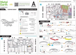 Die einzelnen Komponenten werden aus den Blechen herausgelöst und mittels Laschen-Steckverschlüssen verbunden – ganz ohne Klebstoff. Wir empfehlen kleine Seitenschneider und flache Pinzetten für saubere Biegungen und präzises Ausrichten. Das fertige Modell misst etwa 14 × 13,2 × 4,9 cm und ergänzt perfekt die Sammlung von Filmfans, Sci‑Fi-Enthusiasten und Liebhabern von Metallmodellen.