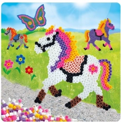 Lege die farbigen Perlen auf die beiliegende Plastikplatte. Sobald alle Perlen an ihrem Platz sind, bitte Mama oder Papa um Hilfe – gemeinsam könnt ihr das Bild fixieren.