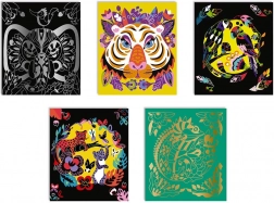 5 Kratzkarten mit verschiedenen Tieren, Stäbchen zum Herauskratzen
