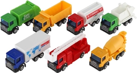 Eine vielseitige Kollektion von sechs verschiedenen LKWs, von denen jeder einzigartige Funktionen und Designs bietet.