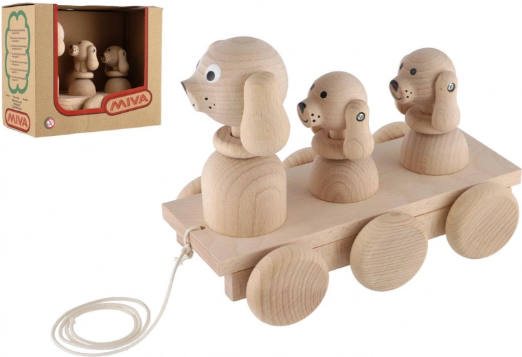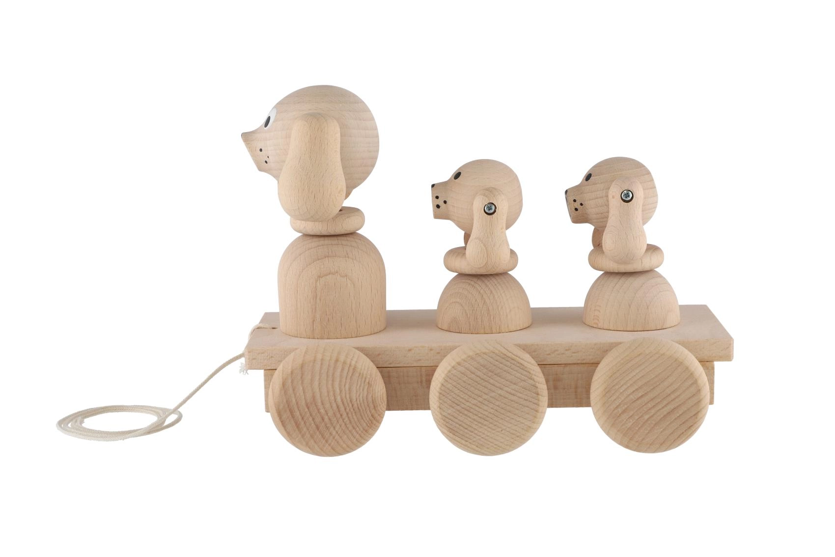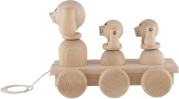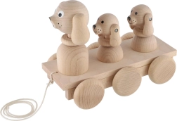 Dieses klassische Ziehspielzeug aus Naturholz ist der ideale Begleiter für Kinder, die das Laufen entdecken. Beim Ziehen bewegen sich die drei Hunde synchron, was Kinder zu weiteren Schritten motiviert und ihnen Freude an der Bewegung bringt. Dank der robusten Ausführung und angenehmen Formen liegt das Spielzeug sicher und bequem in kleinen Kinderhänden.