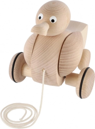 Dieses klassische Ziehspielzeug ist aus Naturholz gefertigt und für sicheres und unterhaltsames Spielen konzipiert. Die Ente bewegt sich beim Fahren niedlich und wackelt mit dem Kopf, wodurch sie Kinder zu weiteren Schritten und Entdeckungen anregt. Sie besticht durch eine robuste Konstruktion und glatte Kanten für ein bequemes Greifen mit kleinen Händen.
