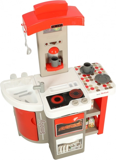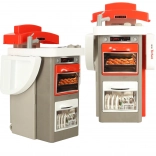Die Küche umfasst Spülbecken mit Wasserhahn, Backofen, Geschirrspüler, Kühlschrank mit zu öffnenden Türen sowie eine Kapsel-Kaffeemaschine mit Stauraum für Kapseln. Enthalten sind 22–23 Zubehörteile (Töpfe, Teller, Besteck, Tassen, Becher, Kapseln, Küchenutensilien, Lebensmittel). Dank der Rollen und der cleveren klappbaren Konstruktion lässt sie sich nach dem Spielen leicht bewegen und verstauen.