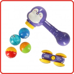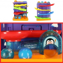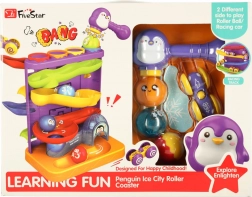 Interaktive 3-in-1-Kugelbahn mit Hammer, Pinguin und Auto