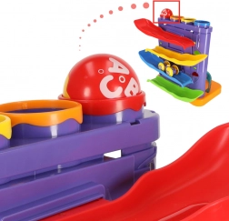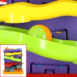 Die Bahn verfügt über zwei unabhängige Strecken – eine Kugel- und eine Auto-Strecke – und eignet sich so für ein oder mehrere Kinder zugleich. Die robuste Kunststoffausführung ist leicht zu reinigen und für den täglichen Einsatz gemacht.