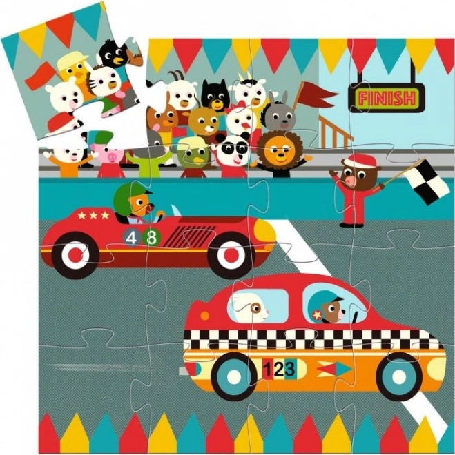 Genießen Sie den Spaß und die Spannung mit dem Puzzle Rennwagen, das ein Rennatmosphäre mit süßen tierischen Rennfahrern bietet.