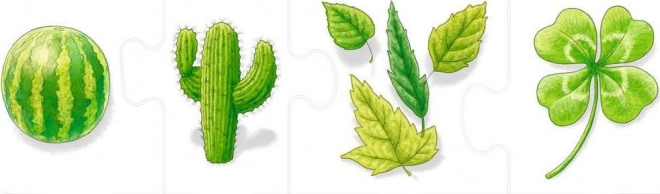 Jedes Minipuzzle stellt eine Farbe mit thematischen Bildern dar, die sich Kinder leicht merken und benennen können.