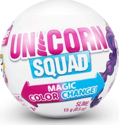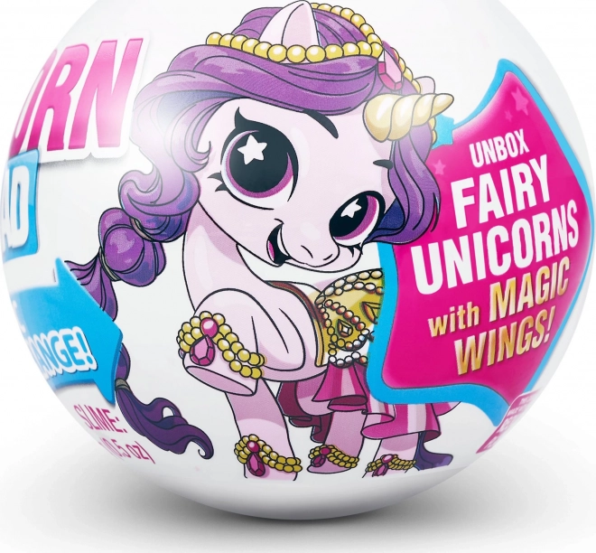 Der Packungsinhalt umfasst: Einhorn-Figur, Outfits, Schuhe, Accessoires, Slime, Aufkleber und eine wiederverwendbare Aufbewahrungskapsel.