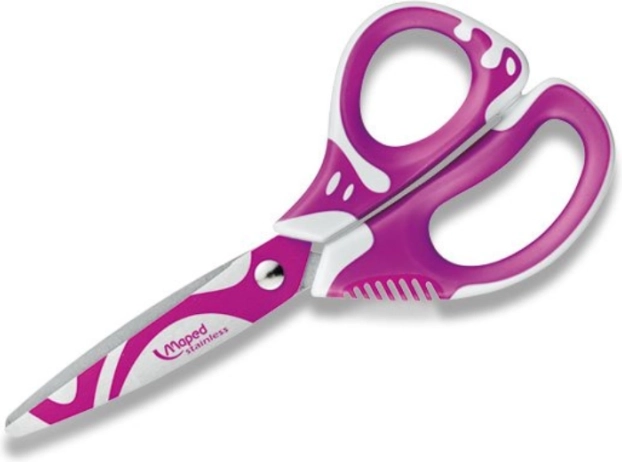 Die praktische MAPED Zenoa Fit Schere mit 13 cm Länge ist ideal für Kinder und Anfänger. Sie bietet weiche, symmetrische Griffe für einen bequemen Halt, abgerundete Spitzen für mehr Sicherheit und dekorierte Klingen aus geschliffenem Edelstahl für präzise und glatte Schnitte. Die Farbvariante wird in einem Mix je nach Lagerbestand geliefert.