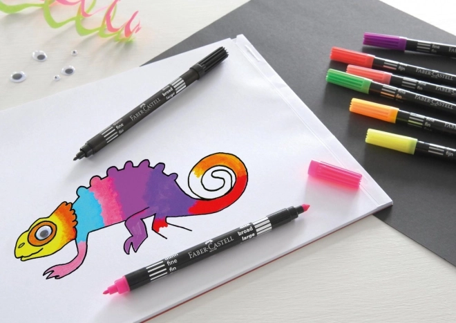 Das Set enthält 10 hochwertige beidseitige Stifte von Faber-Castell Neon mit verschiedenen Spitzengrößen, ideal für verschiedene Zeichentechniken.