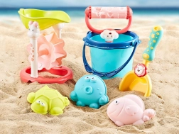 Dieses 7-teilige Set enthält alles, was Ihr Kind für kreatives Spiel im Sand benötigt. Eimer, Schaufel, drei bunte Förmchen und ein Sieb mit Windrad bieten unzählige Möglichkeiten, die Fantasie und Feinmotorik der Kinder zu fördern. Das Spielen im Sand wird nie langweilig, und mit diesem Set wird jedes Spiel noch unterhaltsamer. Dank der attraktiven Farben und interessanten Tierformen wird das Set bei allen kleinen Baumeistern beliebt sein.