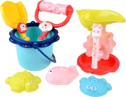 Beinhaltet Eimer, Schaufel, Förmchen und ein Sieb mit Windrad. Ideal zur Förderung der kindlichen Kreativität und des spielerischen Lernens.