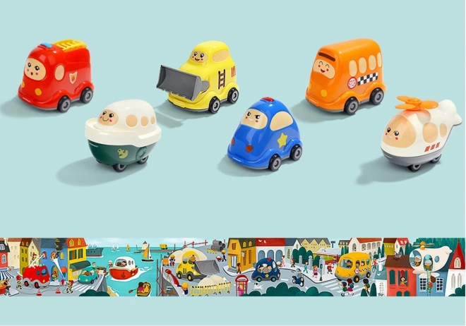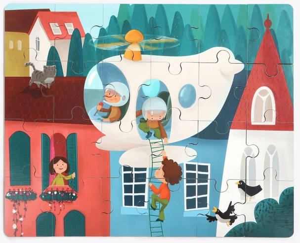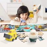Die Mini-Serie ermöglicht das Verbinden der Randteile mehrerer Sets (Feuerwehrauto, Polizeiauto, Schulbus, Bulldozer, Helikopter, Schiff) zu einem Panoramapuzzle. Fördert Geduld, Hand-Auge-Koordination und selbstständiges Spiel.