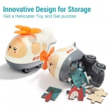 Entdecken Sie das clevere 2-in-1-Spielzeug: ein Holzpuzzle mit Fahrzeugmotiven und ein Kunststoff-Helikopter mit aufklappbarem Deckel zur Aufbewahrung der Teile und weiterer Schätze. Die Puzzleteile sind nummeriert, sodass Kinder sich leicht orientieren und das Puzzeln noch unterhaltsamer und lehrreicher wird.