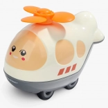 Der Kunststoff-Helikopter mit Rädern hat an der Unterseite einen aufklappbaren Deckel, sodass Kinder das gesamte Puzzle oder ihre kleinen Schätze darin verstauen können.
