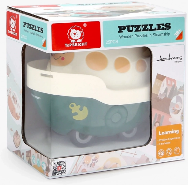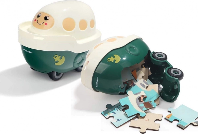 Das Kunststoff-Boot mit niedlichem Gesicht ist ein voll funktionsfähiges Spielzeug. Der Boden lässt sich öffnen und fasst das gesamte Puzzle oder andere kleine Schätze.