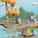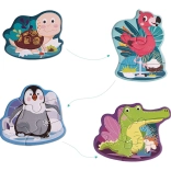 Dieses verspielte Set enthält 4 Tierpuzzles mit unterschiedlichem Schwierigkeitsgrad (2, 3, 4 und 5 Teile) und passt sich so ideal dem Tempo Ihres Kindes an. Die Teile sind groß, robust und angenehm zu greifen – perfekt für die ersten Puzzelschritte.