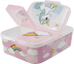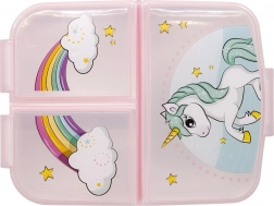 Praktische Kinder-Snackbox mit Einhornmotiv bietet drei getrennte Fächer, robuste Ausführung und sicheres Verschließen für den täglichen Gebrauch in der Schule, auf dem Spielplatz und unterwegs. Sie ist BPA-frei und verfügt über eine offizielle Lizenz.