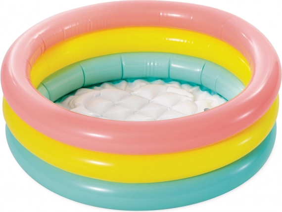 Gönnen Sie Ihren Kindern Spaß in der Sonne mit diesem aufblasbaren Pool, der ideal für Outdoor-Wasserspiele ist. Der Pool ist aus dauerhaftem Vinyl gefertigt und mit drei Ringen in fröhlichen Farben ausgestattet. Mit weichem aufblasbarem Boden ist er bequem und sicher für Kinder, die es lieben, im Wasser zu planschen.