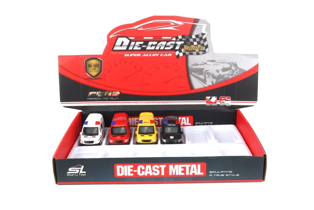 Diese Kollektion bietet vier beliebte Motive – Krankenwagen, Feuerwehr, DHL und Polizei. Jedes Auto ist mit einem Aufziehmotor (Pull-Back) ausgestattet: nach hinten ziehen und den schnellen Start nach vorn beobachten. Ideal für Rettungsspiele, Zustellungen und Polizeiverfolgungen.