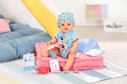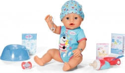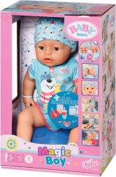 Entdecken Sie die realistische BABY born Junge 43 cm mit magischem Schnuller, der die Augen öffnet und schließt, wenn der Schnuller in beliebiger Position gedreht wird. Bietet 10 realistische Funktionen ohne Batterien – sie trinkt Wasser, isst Brei, macht in die Windel oder aufs Töpfchen, weint Tränchen und kann sogar groß machen. Der Soft Touch-Körper mit weicher Haptik, leicht bewegliche Gliedmaßen und umfangreiches Zubehör sorgen für stundenlanges kreatives Spiel und fördern Empathie.